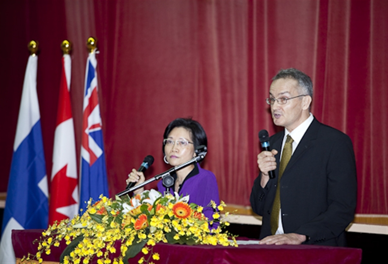 The guest first attended the reception and a discussion hosted by the President of Tamkang University, Dr. Flora C.I. Chang, at Ching-sheng International Conference Hall; then he visited Carrie Chang Fine Arts Center, Maritime Museum, and Chueh-sheng Memorial Library. At night, they attended the dinner hosted by President Chang at Regalees Hotel.