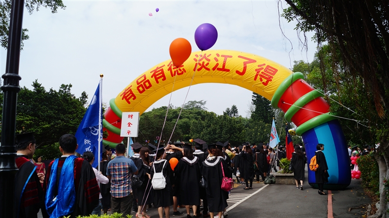 畢業典禮首先由張校長致詞,張校長表示:「三環五育」與「三化」是學校最重要的教育理念理念,並以培育具有「全球視野」、「資訊運用」、「洞悉未來」、「品德倫理」、「獨立思考」、「樂活健康」、「團隊合作」及「美學涵養」等八大基本素養的畢業生為目標。張校長特別表揚建築系的應屆畢業生李承翰同學,3年前他遠赴柬埔寨幫貧村重建教室,去年到台東幫偏鄉小校翻修老舊教室,更在畢業前夕協助93歲陳阿嬤修繕破舊「土角厝」,解決居住危險的問題,不僅發揮所學並實踐了淨心淨境的推己及人,也彰顯了「德不孤,必有鄰」的公平正義。此外,管科所校友徐航健響應本校將籌建國際會議中心,特別捐贈1.2億元,不僅支持學校的興學理念,更為學校增添了邁向國際頂尖大學的利器。張校長進一步表示:這兩位淡江人的身體力行也為淡江品德年做了最完美的詮釋,這也正符合了本校揭櫫的使命—「塑造社會新文化,培育具心靈卓越的人才」,學子們在追求專業知識與通識核心課程的同時,更要注重品德的陶冶,在踏入社會後,才能夠發揮術德兼備、用為世匡,進而燭照社會人類。