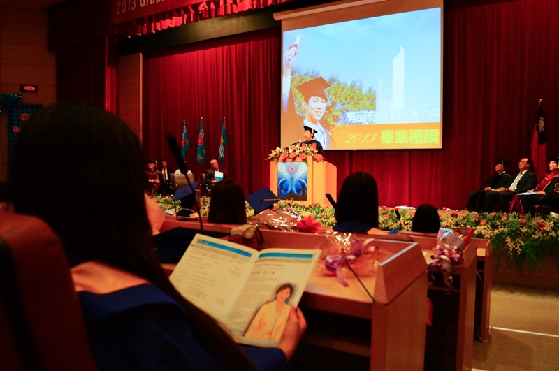 蘭陽校園90%以上的課程採英語授課,各屆畢業典禮皆全程以英語進行,畢業典禮由張校長主持,蒞臨的貴賓有:馬紹爾群島共和國菲利浦.卡布亞(Phillip Kabua)大使暨夫人、參議員Jeban Riklon,宜蘭縣政府計畫處周慶安處長代表縣長出席,礁溪鄉長林錫忠先生等。張校長以「有品有德.淡江了得」期勉畢業同學需具備:品德倫理、獨立思考、樂活健康、團隊合作、美學涵養、全球視野、資訊運用、洞悉未來等八大基本素養,希望大家能夠保持淡江人的特質,貢獻世界。宜蘭縣政府計畫處長、礁溪鄉長均上台勉勵,給予同學莫大的啓發與祝福。