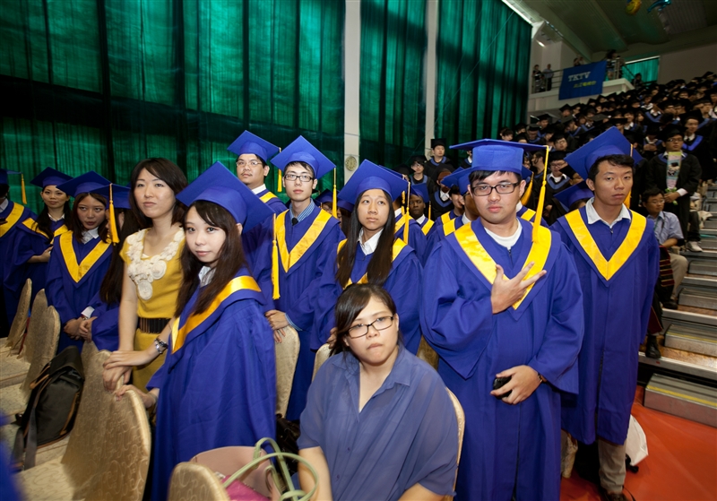 又見鳳凰花開、驪歌輕唱的時節!本校101學年度畢業典禮於6月15日(星期六)在淡水校園紹謨紀念體育館舉行。典禮前,於上午9時先進行了「校園巡禮」,師長們引領畢業生繞行校園,回顧求學期間校園生活的心情點滴,和來自各地的同學們相識相聚於五虎崗上,將永遠成為畢業生心中最深刻的美麗回憶。典禮於上午10時開始,由校長張家宜主持,並有新北市市長朱立倫、吐瓦魯駐華大使Minute Alapati TAUPO夫婦、史瓦濟蘭王國大使H.E Mrs. Njabuliso B. Gwebu 等貴賓親臨典禮會場祝賀。