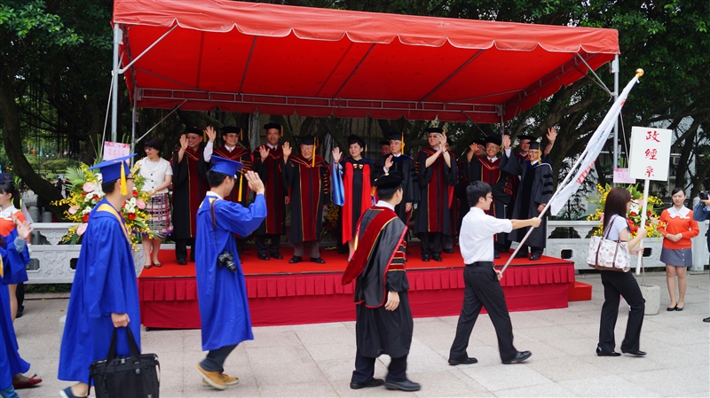 又見鳳凰花開、驪歌輕唱的時節!本校101學年度畢業典禮於6月15日(星期六)在淡水校園紹謨紀念體育館舉行。典禮前,於上午9時先進行了「校園巡禮」,師長們引領畢業生繞行校園,回顧求學期間校園生活的心情點滴,和來自各地的同學們相識相聚於五虎崗上,將永遠成為畢業生心中最深刻的美麗回憶。典禮於上午10時開始,由校長張家宜主持,並有新北市市長朱立倫、吐瓦魯駐華大使Minute Alapati TAUPO夫婦、史瓦濟蘭王國大使H.E Mrs. Njabuliso B. Gwebu 等貴賓親臨典禮會場祝賀。