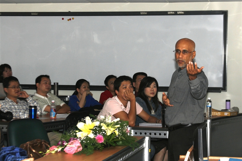 The guest first attended the reception and a discussion hosted by the President of Tamkang University, Dr. Flora C.I. Chang, at Ching-sheng International Conference Hall; then he visited Carrie Chang Fine Arts Center, Maritime Museum, and Chueh-sheng Memorial Library. At night, they attended the dinner hosted by President Chang at Regalees Hotel.