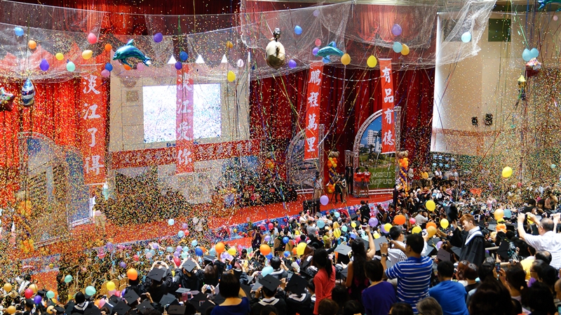 又見鳳凰花開、驪歌輕唱的時節!本校101學年度畢業典禮於6月15日(星期六)在淡水校園紹謨紀念體育館舉行。典禮前,於上午9時先進行了「校園巡禮」,師長們引領畢業生繞行校園,回顧求學期間校園生活的心情點滴,和來自各地的同學們相識相聚於五虎崗上,將永遠成為畢業生心中最深刻的美麗回憶。典禮於上午10時開始,由校長張家宜主持,並有新北市市長朱立倫、吐瓦魯駐華大使Minute Alapati TAUPO夫婦、史瓦濟蘭王國大使H.E Mrs. Njabuliso B. Gwebu 等貴賓親臨典禮會場祝賀。