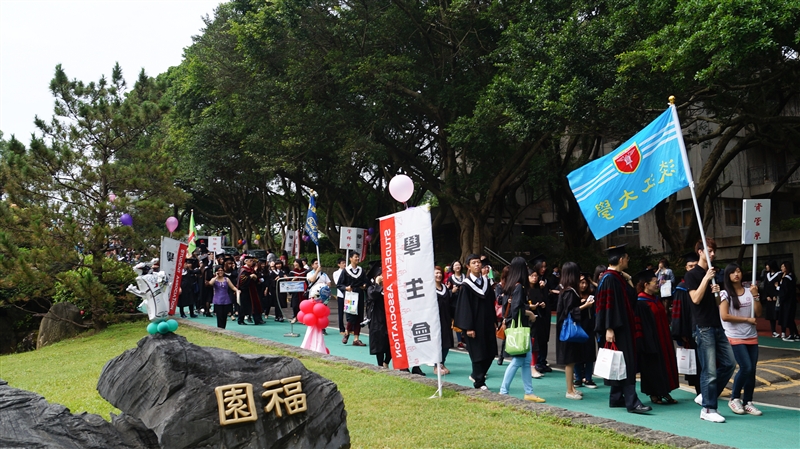 又見鳳凰花開、驪歌輕唱的時節!本校101學年度畢業典禮於6月15日(星期六)在淡水校園紹謨紀念體育館舉行。典禮前,於上午9時先進行了「校園巡禮」,師長們引領畢業生繞行校園,回顧求學期間校園生活的心情點滴,和來自各地的同學們相識相聚於五虎崗上,將永遠成為畢業生心中最深刻的美麗回憶。典禮於上午10時開始,由校長張家宜主持,並有新北市市長朱立倫、吐瓦魯駐華大使Minute Alapati TAUPO夫婦、史瓦濟蘭王國大使H.E Mrs. Njabuliso B. Gwebu 等貴賓親臨典禮會場祝賀。